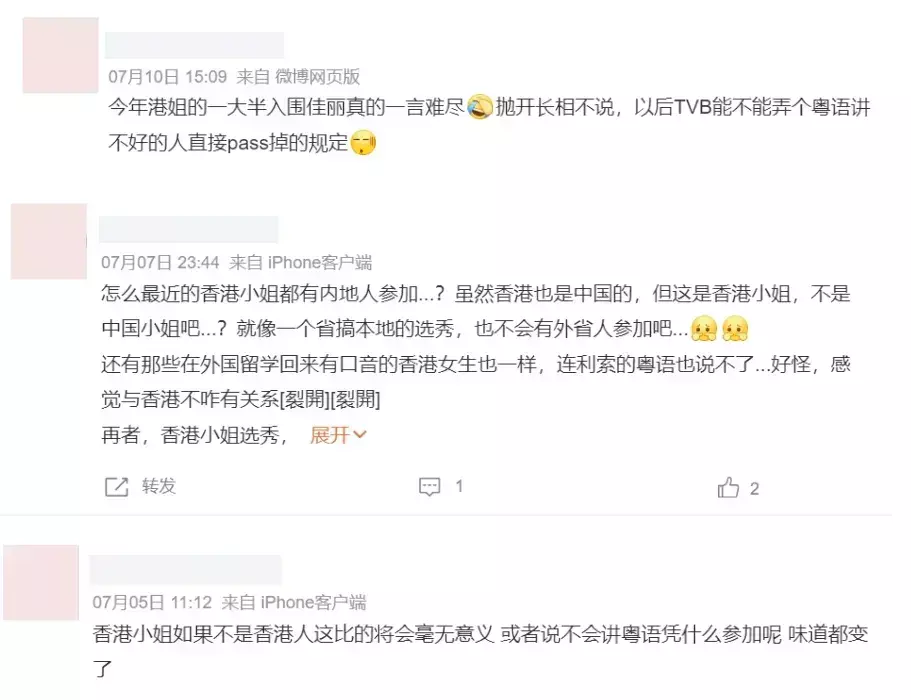 港媒的采访都用粤语,所以每个港姐不论来自哪里,都在用粤语回答。面对非local“蹩脚不专业”的口音,网友们纷纷拿起键盘: